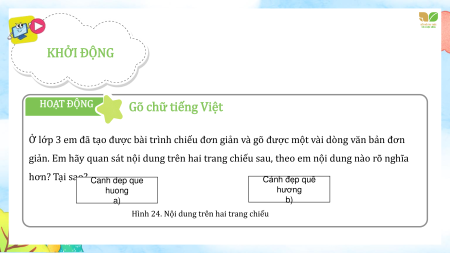 Hình 24. Nội dung trên hai trang chiếu 1. Gõ chữ tiếng Việt