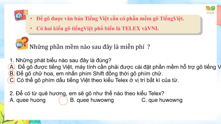 A. Để gõ được tiếng Việt, máy tính cần phải được cài đặt phần mềm hỗ trợ gõ tiếng Việt.