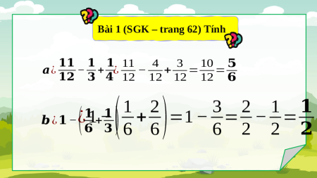 Bài 1 (SGK – trang 62) Tính 𝟏𝟏 𝟏 𝟏 11 4 3 10 𝟓 𝒂¿ − −