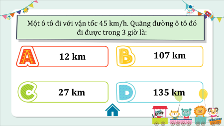 đi được trong 3 giờ là: 12 km 107 km 27 km 135 km