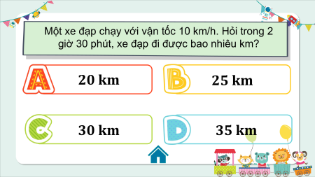 giờ 30 phút, xe đạp đi được bao nhiêu km? 20 km 25 km 30 km 35 km
