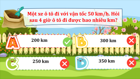 sau 4 giờ ô tô đi được bao nhiêu km? 200 km 300 km 250 km 350 km
