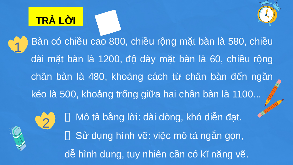 dễ hình dung, tuy nhiên cần có kĩ năng vẽ.