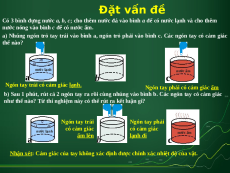 Có 3 bình đựng nước a, b, c; cho thêm nước đá vào bình a để có nước lạnh và cho thêm