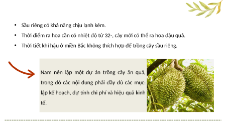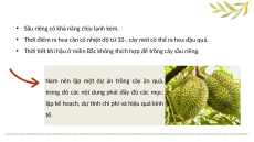 • Thời tiết khí hậu ở miền Bắc không thích hợp để trồng cây sầu riêng.
