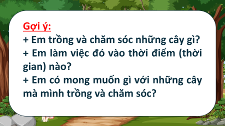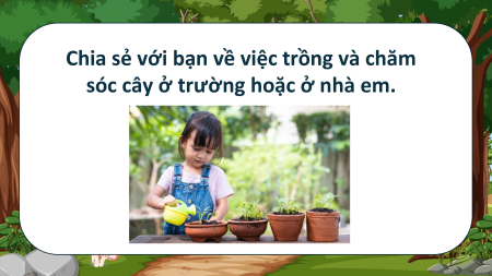 - Chia sẻ được với bạn về việc trồng và chăm sóc cây ở trường hoặc ở nhà em.