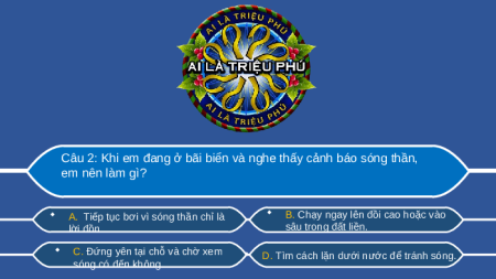 Câu 2: Khi em đang ở bãi biển và nghe thấy cảnh báo sóng thần, em nên làm gì?