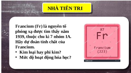 Hãy dự đoán tính chất của Francium.