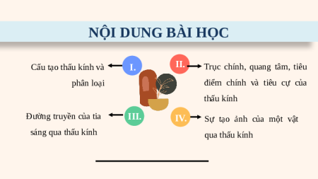 điểm chính và tiêu cự của thấu kính Đường truyền của tia III. IV.