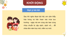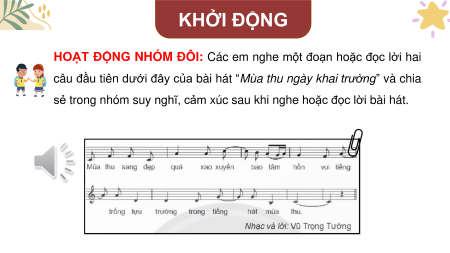 sẻ trong nhóm suy nghĩ, cảm xúc sau khi nghe hoặc đọc lời bài hát. KHỞI ĐỘNG Gợi ý trả lời