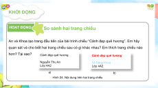 quan sát và cho biết hai trang chiếu sau có gì khác nhau? Em thích trang chiếu nào hơn? Tại sao? Cảnh đẹp quê hương