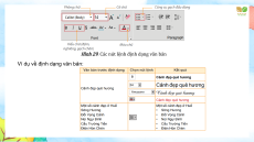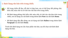 • Định dạng được kiểu chữ, màu chữ, cỡ chữ cho văn bản trên trang chiếu.