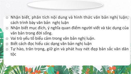 o Nhận biết, phân tích nội dung và hình thức văn bản nghị luận;