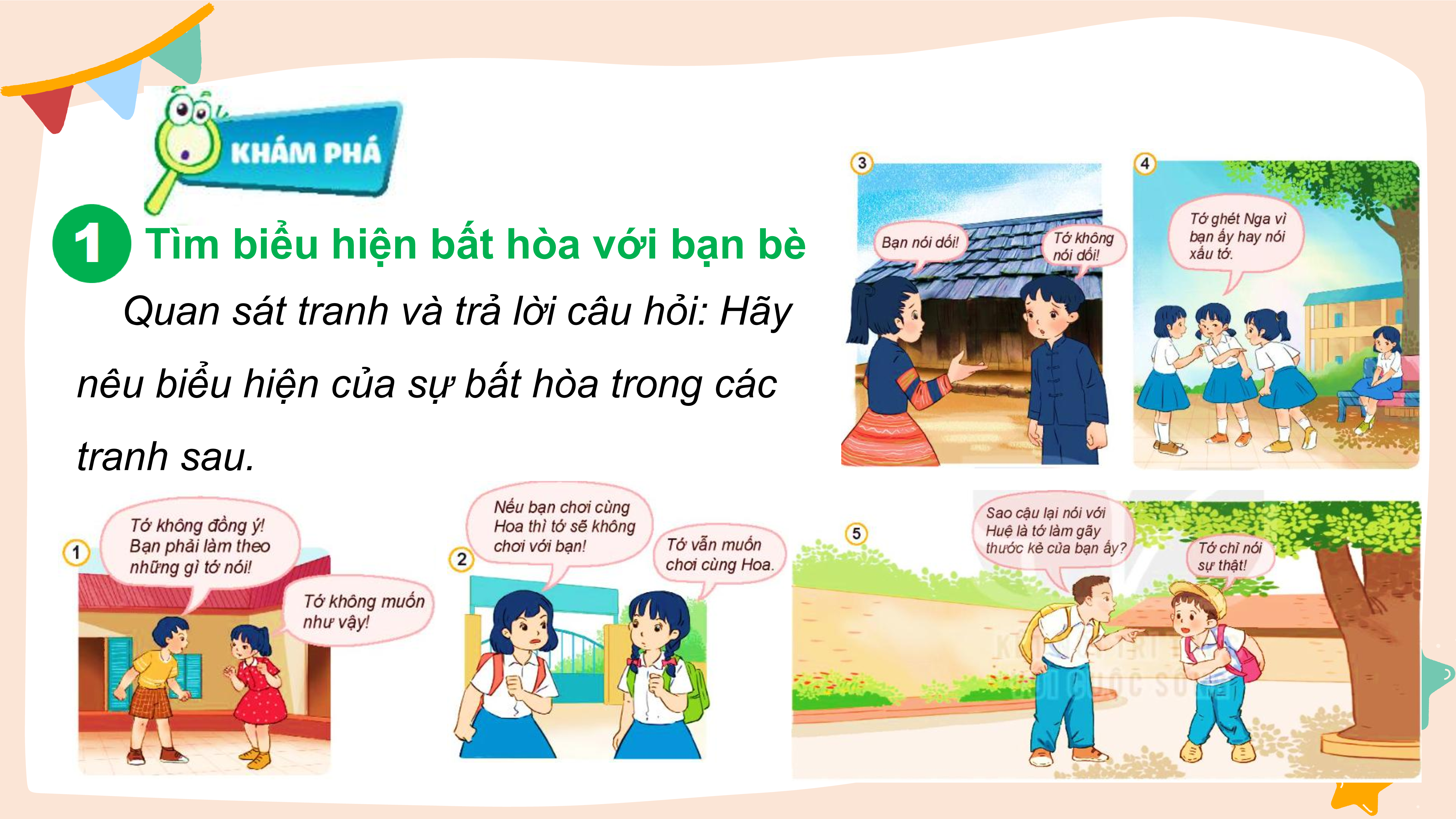 nêu biểu hiện của sự bất hòa trong các tranh sau.