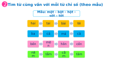 Tìm từ cùng vần với mỗi từ chỉ số (theo mẫu)