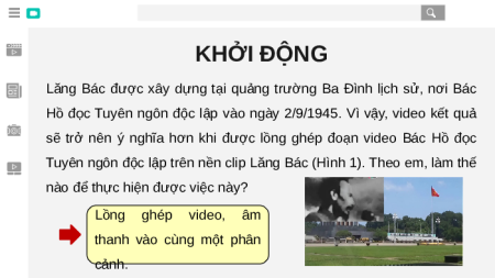 Tuyên ngôn độc lập trên nền clip Lăng Bác (Hình 1). Theo em, làm thế