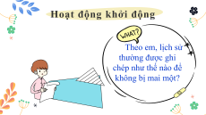 Hoạt động khởi động Theo em, lịch sử thường được ghi chép như thế nào để không bị mai một? BÀI 9 ÂM VANG CỦA LỊCH SỬ TRI THỨC NGỮ VĂN
