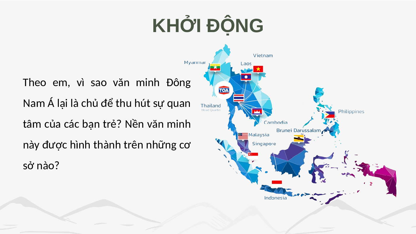 phá và trải nghiệm về lịch sử, văn hóa Đông Nam Á. KHỞI ĐỘNG