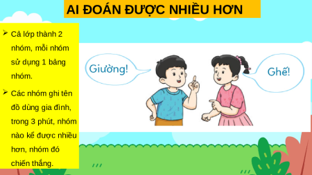 AI ĐOÁN ĐƯỢC NHIỀU HƠN Cả lớp thành 2 nhóm, mỗi nhóm sử dụng 1 bảng nhóm. Các nhóm ghi tên đồ dùng gia đình, trong 3 phút, nhóm nào kể được nhiều hơn, nhóm đó chiến thắng. BÀI 15 BẢO QUẢN ĐỒ DÙNG GIA ĐÌNH NỘI DUNG BÀI HỌC 0 0 1
