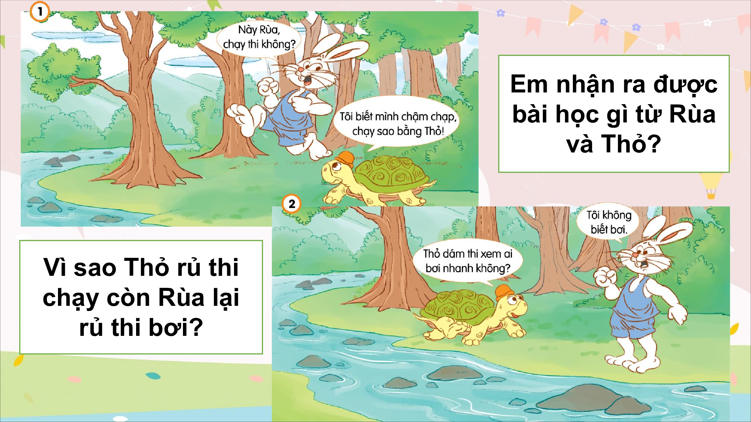bài học gì từ Rùa và Thỏ? Vì sao Thỏ rủ thi chạy còn Rùa lại rủ thi bơi?