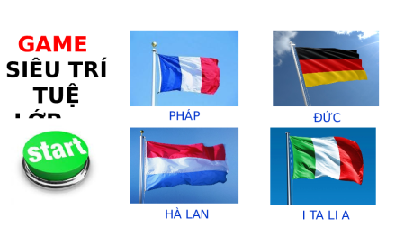 KHỞI ĐỘNG KHỞI ĐỘNG GAME SIÊU TRÍ TUỆ LỚP….. GAME SIÊU TRÍ TUỆ PHÁP ĐỨC LỚP….. HÀ LAN I TA LI A MỤC TIÊU