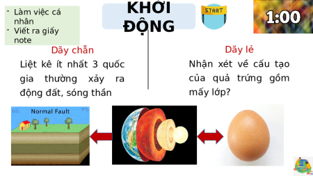 •Trình bày được hiện tượng động đất, núi lửa