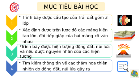 • Trình bày được cấu tạo của Trái đất gồm 3 1 lớp