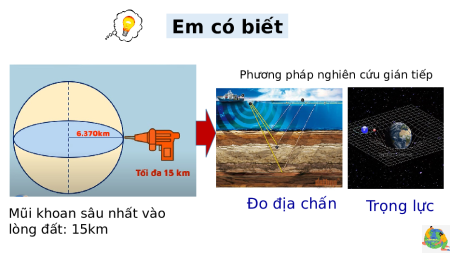 Phương pháp nghiên cứu gián tiếp Đo địa chấn Mũi khoan sâu nhất vào Trọng lực lòng đất: 15km