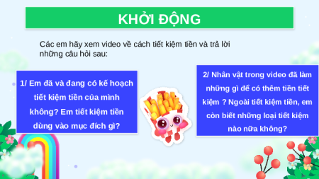 Các em hãy xem video về cách tiết kiệm tiền và trả lời những câu hỏi sau: