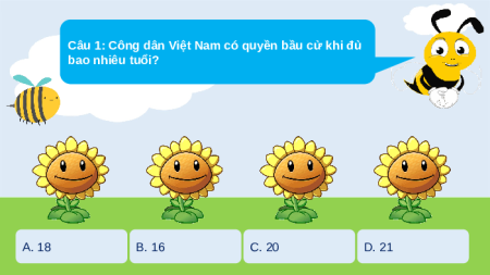 Câu 1: Công dân Việt Nam có quyền bầu cử khi đủ bao nhiêu tuổi? A. 18 B. 16 C. 20 D. 21