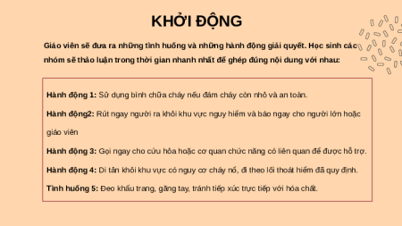 Giáo viên sẽ đưa ra những tình huống và những hành động giải quyết. Học sinh các