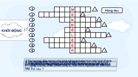 1 G I Ả M D Ầ N 7 Hàng dọc 2 Đ Ộ Â M Đ I Ệ E N 8 3 T Ă N G D Ầ N 7 4 Đ Ồ N G V Ị 6 KHỞI ĐỘNG 5 N E Ê O N 4 6 E L E C T R O N 8 7 K H Í H Í Ế Ê M 7 8 N G U Y Ê E N T Ố 8 9 P H I K I M 6