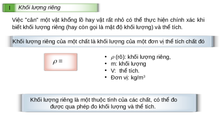 được qua phép đo khối lượng và thể tích. I Khối lượng riêng