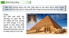 hoặc thể tích của vật có cùng chất liệu trong trường hợp khó đo trực tiếp. Ví dụ: