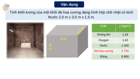 Khi biết một khối lập phương có cạnh dài 10 cm bằng đá hoa cương có khối lượng 2,75 kg,