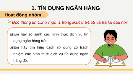 mà em biết và chia sẻ hiểu biết của em về các dịch vụ đó. BÀI 9: DỊCH VỤ TÍN DỤNG NỘI DUNG BÀI HỌC 1 TÍN DỤNG NGÂN HÀNG 2