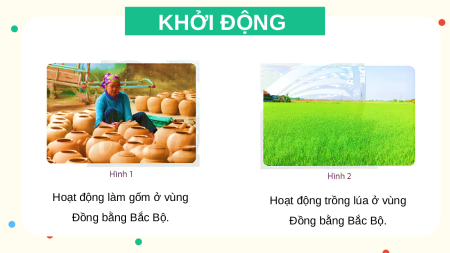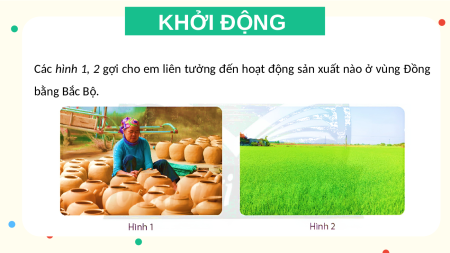 Các hình 1, 2 gợi cho em liên tưởng đến hoạt động sản xuất nào ở vùng Đồng bằng Bắc Bộ. KHỞI ĐỘNG