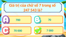 Giá trị của chữ số 7 trong số 247 543 là? 700 70 70 000 7 000
