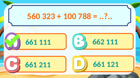 560 323 + 100 788 = ..?.. 661 111 662 111 661 211 661 121 673 x 27 = ..?.. 17 171 18 171 18 161 18 271