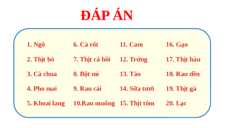 + Mỗi phương án đúng sẽ được 10 điểm.