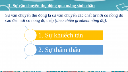 II. Sự vận chuyển thụ động qua màng sinh chất: