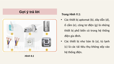 thiết bị nào có trong hệ thống điện gia đình. Hình 9.1 Gợi ý trả lời Trong Hình 9.1: