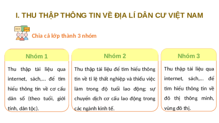 I. THU THẬP THÔNG TIN VỀ ĐỊA LÍ DÂN CƯ VIỆT NAM