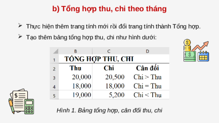Toàn lập bảng tổng hợp thu, chi như ở Hình 1: