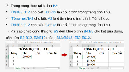 • Dữ liệu tại cột Thu, Chi trong trang tính Tổng hợp liên quan đến