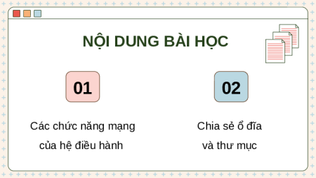 CỦA HỆ ĐIỀU HÀNH NỘI DUNG BÀI HỌC 01 02 Các chức năng mạng Chia sẻ ổ đĩa của hệ điều hành và thư mục