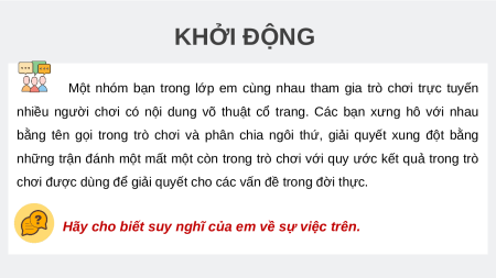 bằng tên gọi trong trò chơi và phân chia ngôi thứ, giải quyết xung đột bằng