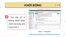 CÁC BẠN ĐẾN VỚI U X TIẾT HỌC MỚI! KHỞI ĐỘNG ? Em hãy chỉ ra những thành phần chính của trang web trong Hình 1. Hình 1. Trang web
