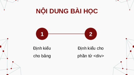 BÀI F11: ĐỊNH KIỂU CSS CHO BẢNG VÀ PHẦN TỬ NỘI DUNG BÀI HỌC 1 2 Định kiểu Định kiểu cho cho bảng phần tử