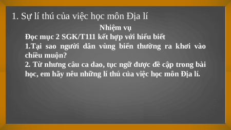 1. Sự lí thú của việc học môn Địa lí Nhiệm vụ